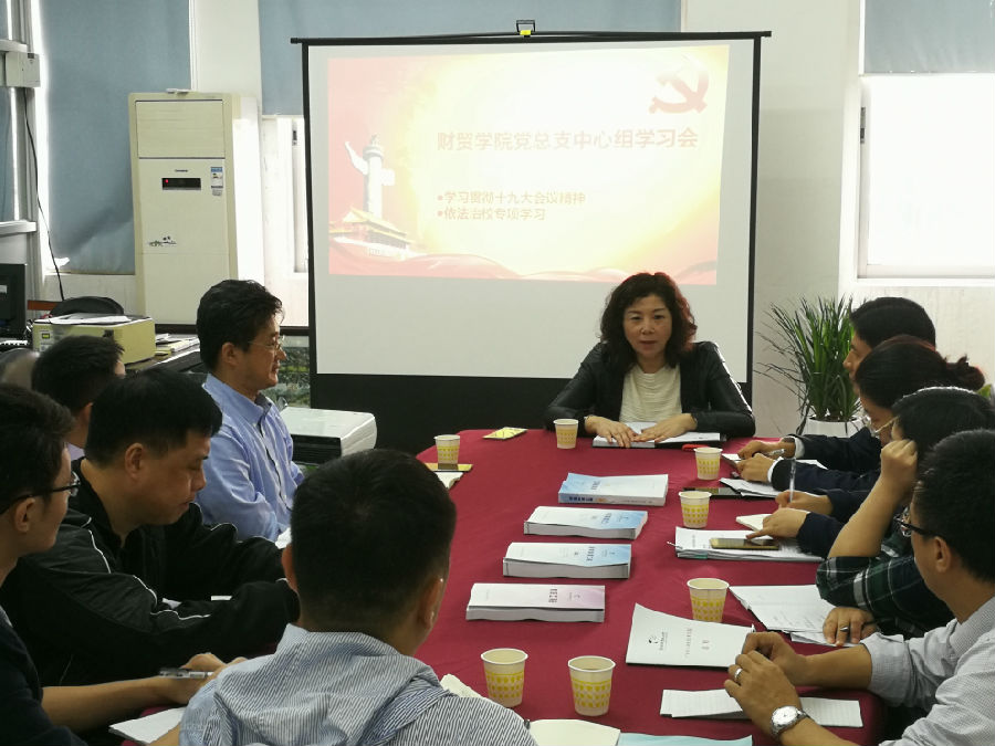 11月7日下午,365 com线路检测召开党总支中心组学习会,就学习贯彻党的十九大会议精神以及推进依法治校进行专题学习。学校李丽副校长出席会议。365 com线路检测党总支委员、领导班子、分工会主席、团学工作负责人参加学习,365 com线路检测党总支书记杨伟柱主持会议。