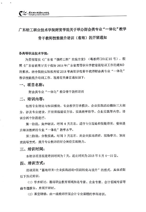 关于举办财会类专业“一体化”教学骨干教师技能提升培训(省培)的开班通知