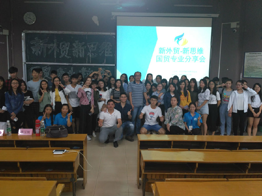 国贸专业2006级校友,广州小旗鱼信息科技有限公司总经理唐永平回到母校,为在校同学带来了精彩绝伦的专业盛宴。唐总首先回顾了自己在外贸行业的工作经历,讲述了自己在外贸行业从业近十载的深刻体会,以自己的亲身经历和体会给师弟师妹很多很好的建议。唐总还就外贸行业的未来发展趋势、就业创业的注意事项等表达了自己的看法。他认为在外贸行业风起云涌的背景下,在校同学要培养吃苦耐劳的精神和勇于创新的勇气,努力学好专业知识的同时还要积极地了解国家的政策和外贸的动向,只有这样才能在毕业后胜任外贸行业瞬息万变的形势变化。唐总脚踏实地的工作作风、严谨的工作态度、向上的工作热情、对外贸行业的执著信念和谦虚乐观的性格为广大在校同学树立的榜样,受到国贸在校同学们的热烈欢迎。