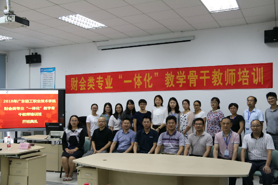 2018年6月4日,365 com线路检测在工业实训楼举行2018年度首个高职师资省培项目——财会类专业“一体化”教学骨干教师培训班开班典礼。财会类专业“一体化”教学骨干教师培训班,是以推进职业教育“教学做一体化”教学模式为导向、提升“一体化”教师素质为目标、实践教学为主线,提升骨干教师的政治思想、职业道德水准、财会专业知识与专业技能、教育教学能力等方面的综合素质的培训班。